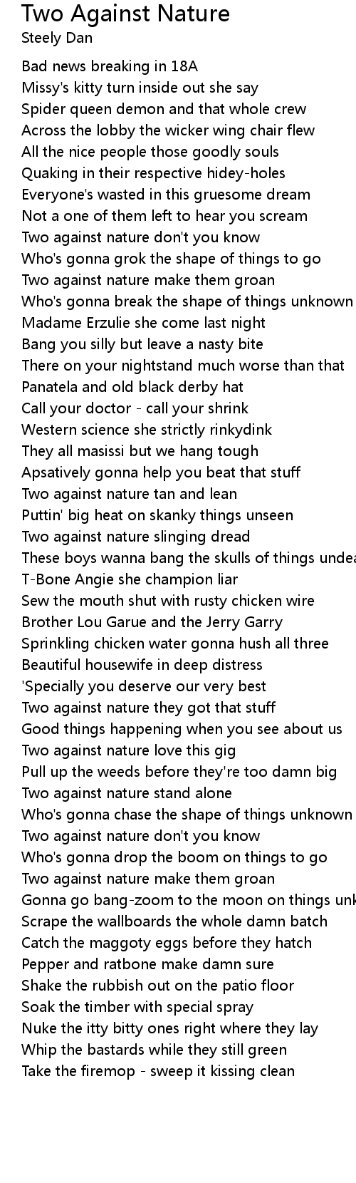 Two against nature don't you know |