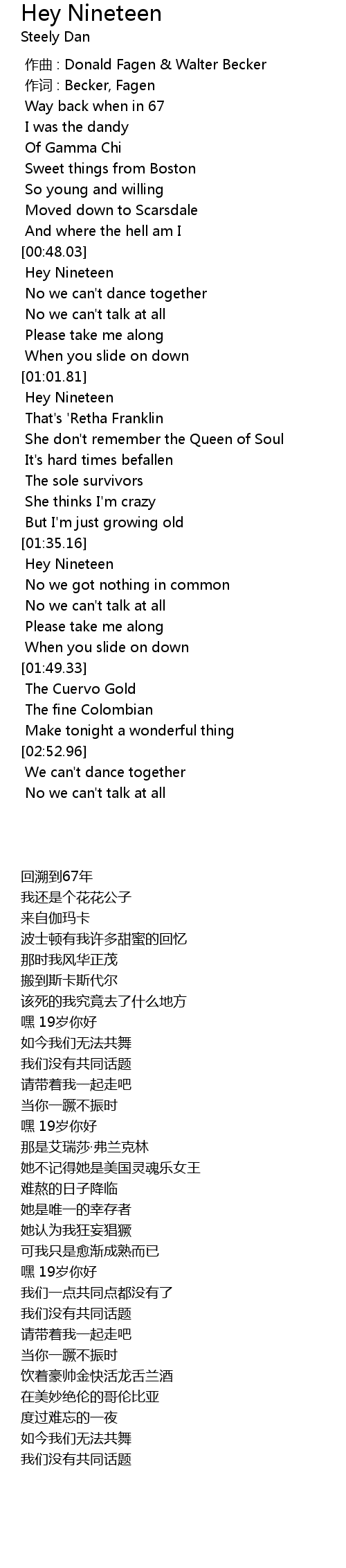 | [00:48.49] | Hey Nineteen |