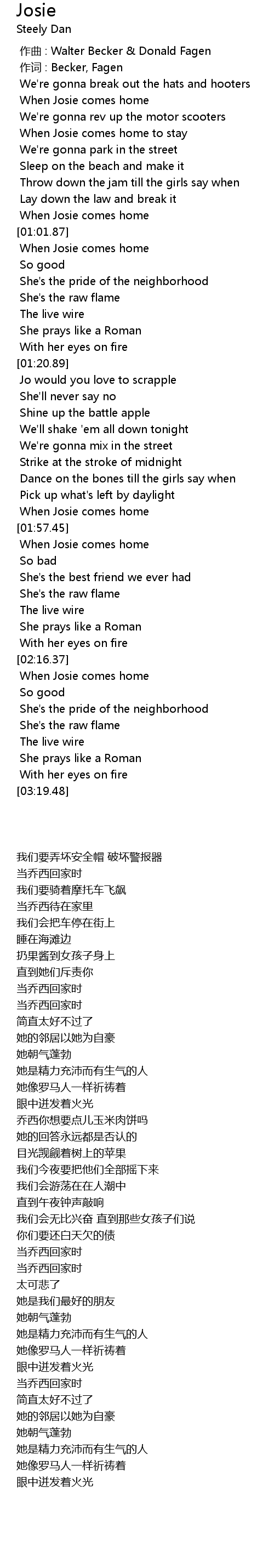 | [01:54.29] | When Josie comes home |