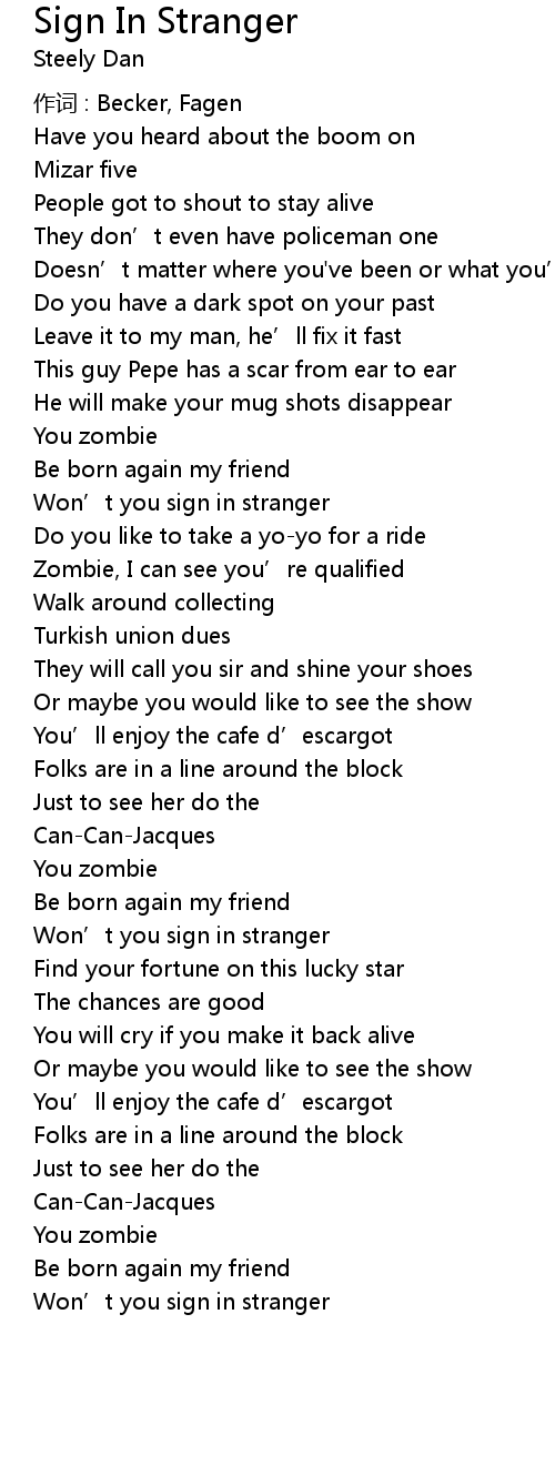 | Won' t you sign in stranger |