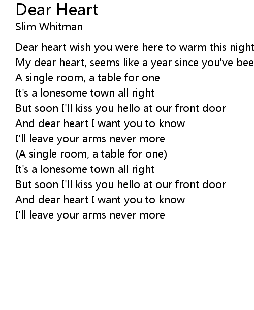| And dear heart I want you to know | |