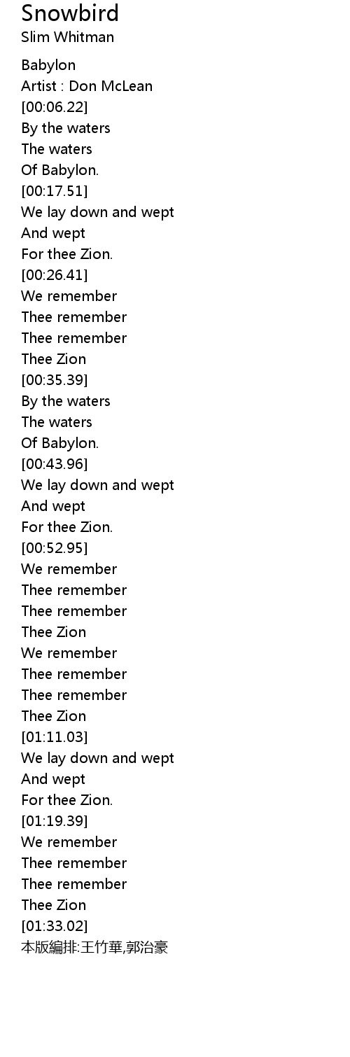 | [01:34.91] | 本版編排:王竹華,郭治豪 |