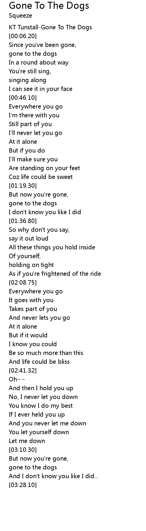 | [03:16.00] | gone to the dogs |
