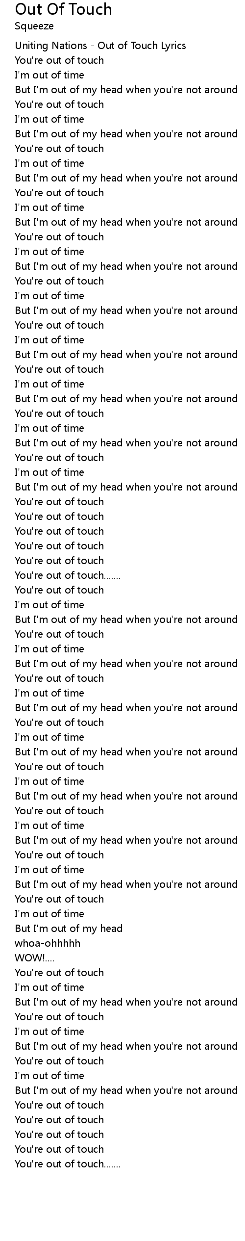 Uniting Nations - Out of Touch Lyrics |