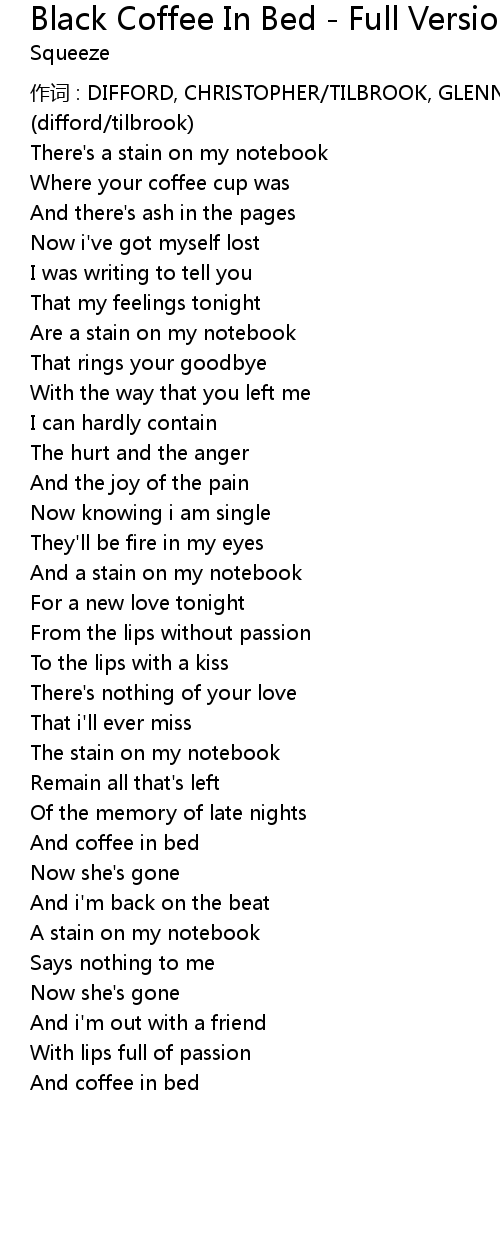 | 歌曲 | Black Coffee In Bed - Full Version |