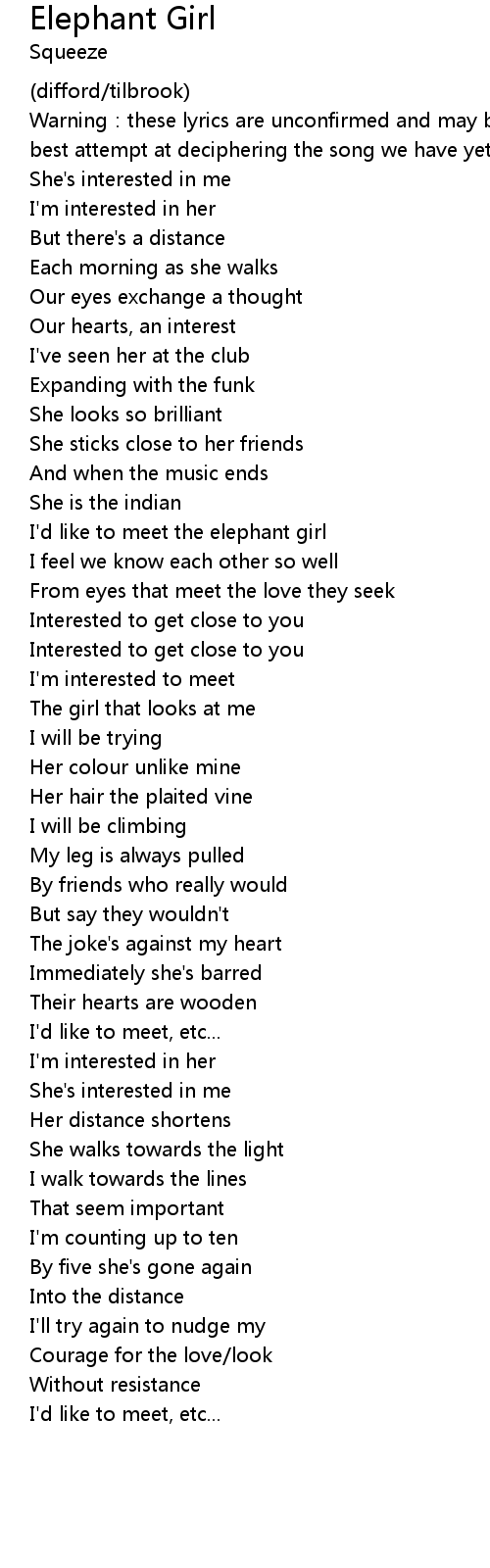 | I' d like to meet the elephant girl | |