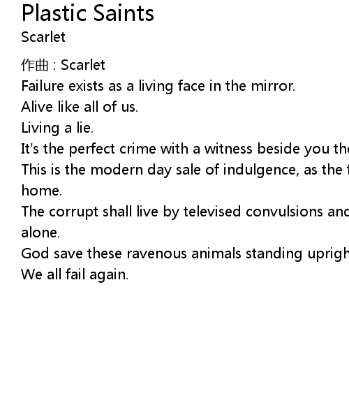 | 歌曲 | Plastic Saints |