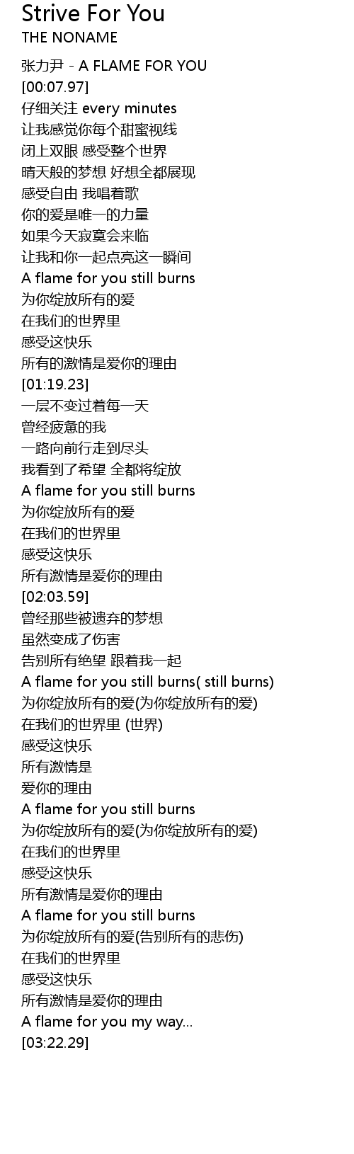 | [02:58.40] | A flame for you still burns |