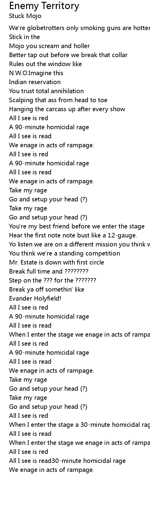 When I enter the stage a 30-minute homicidal rage |