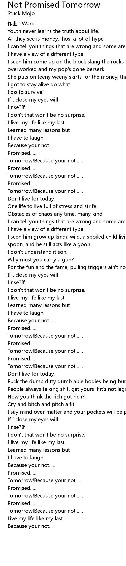 | 歌曲 | Not Promised Tomorrow |