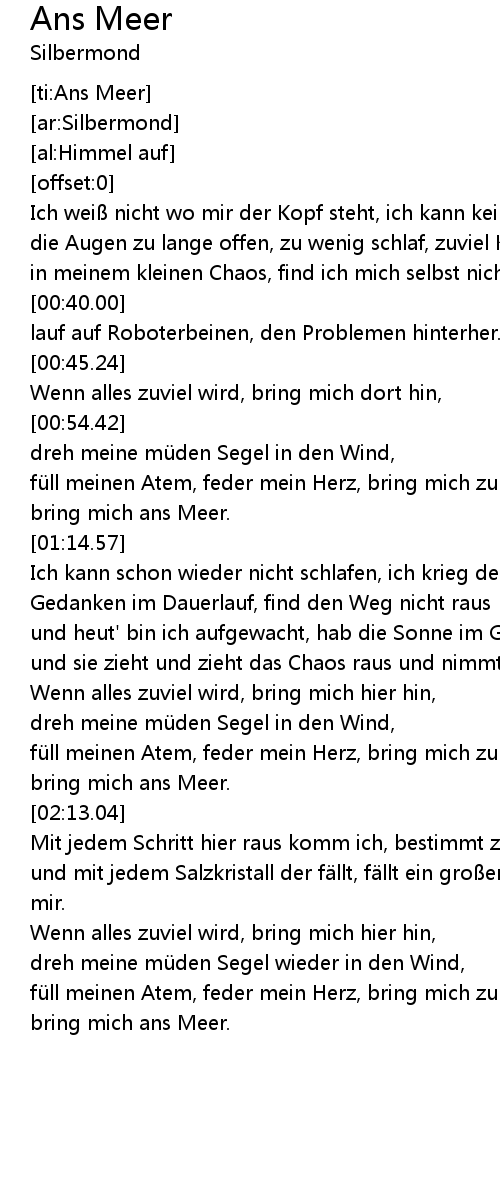 | [02:11.17] | bring mich ans Meer. |