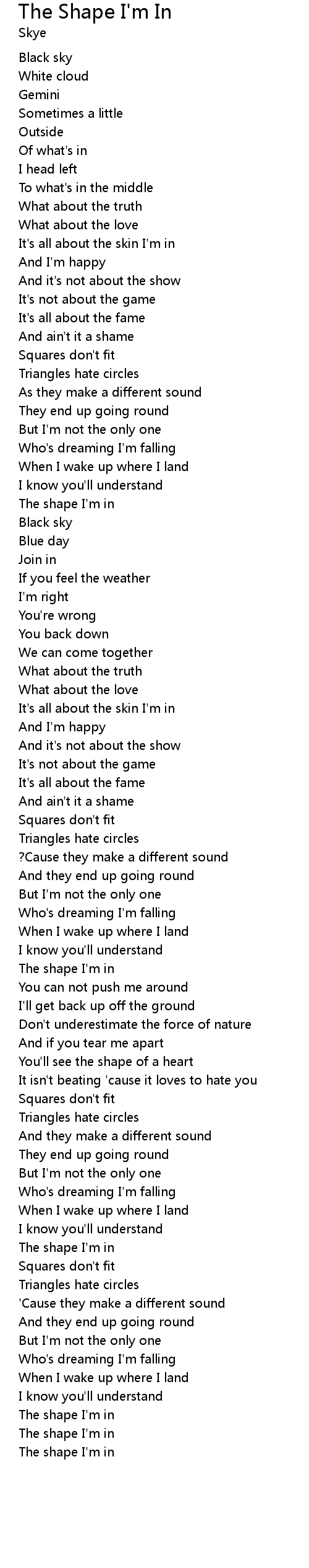 The shape I'm in |