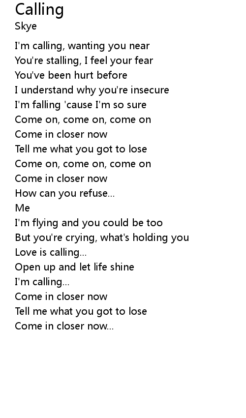| I'm calling, wanting you near | |