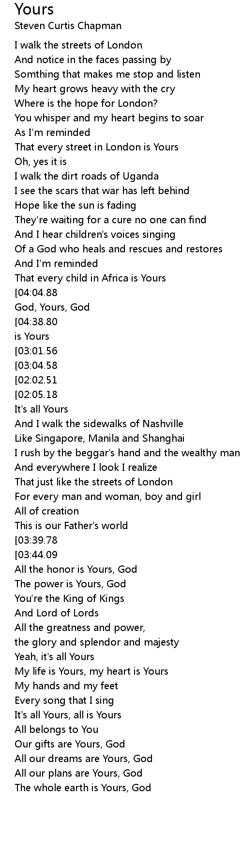 [04:21.80][04:04.88][03:09.70][02:52.56][01:53.60][01:36.27] And its all Yours, God, Yours, God