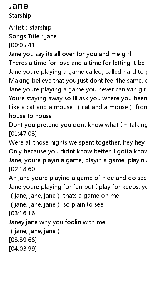 | [03:04.99] | jane, jane, jane thats a game on me |