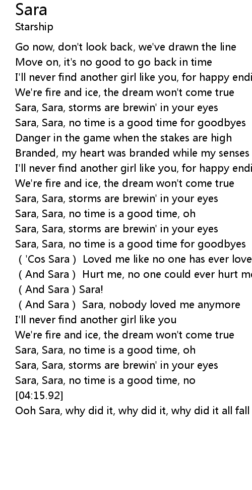 | [03:39.54] | Sara, Sara, storms are brewin' in your eyes |