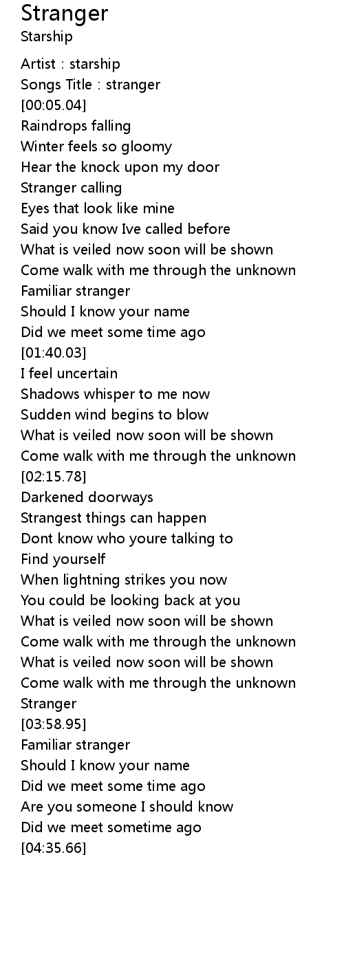 | [04:18.11] | Familiar stranger |