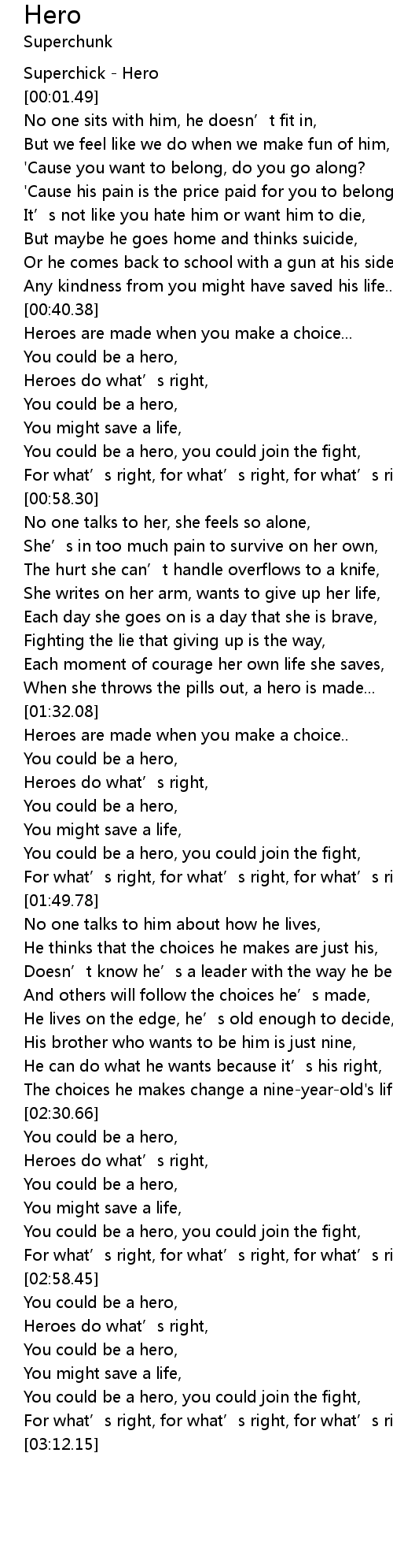 | [01:32.48] | Heroes are made when you make a choice.. |