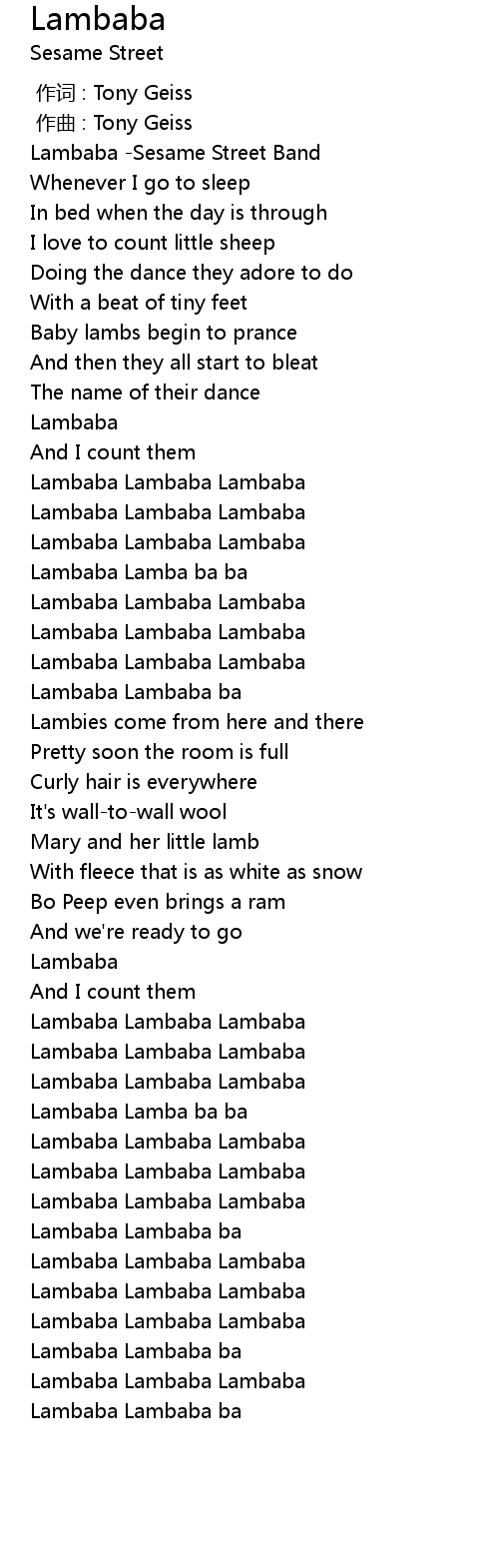 | [00:00.531] | Lambaba -Sesame Street Band |
