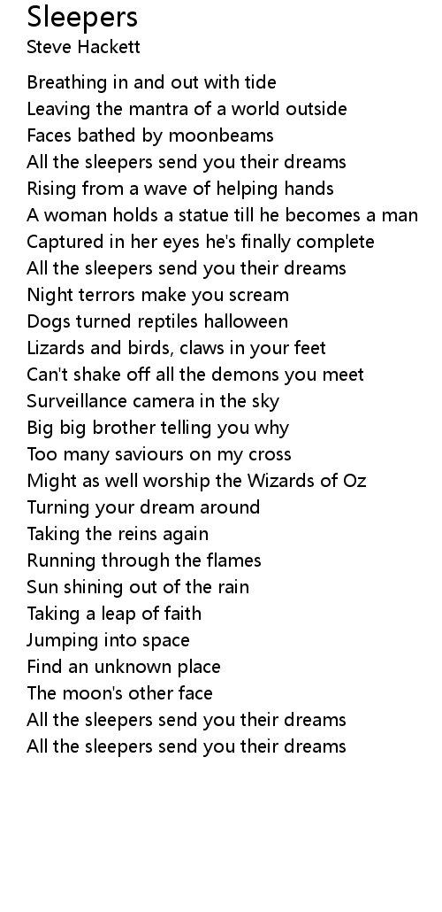 All the sleepers send you their dreams |