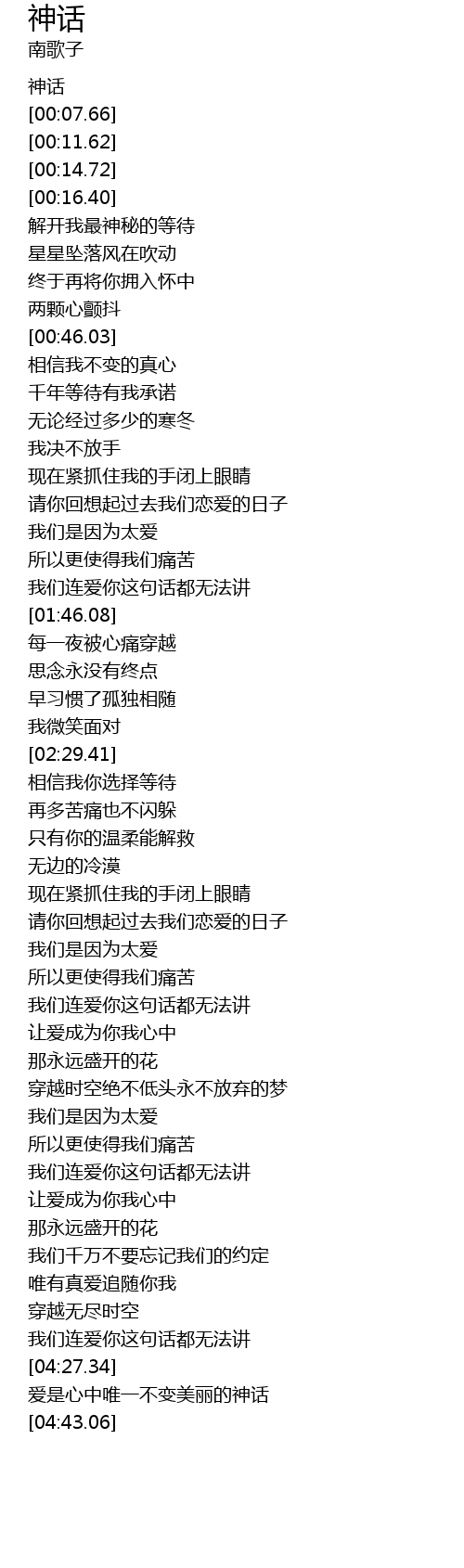 | [00:01.56] | 神话 |