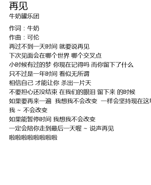 | yí dìng huì péi nǐ zǒu dào zuì hòu yì tiān ō shuō shēng zài jiàn | |