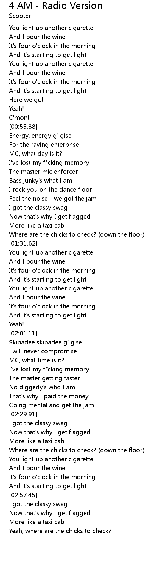 | [02:40.45] | Where are the chicks to check? (down the floor) |