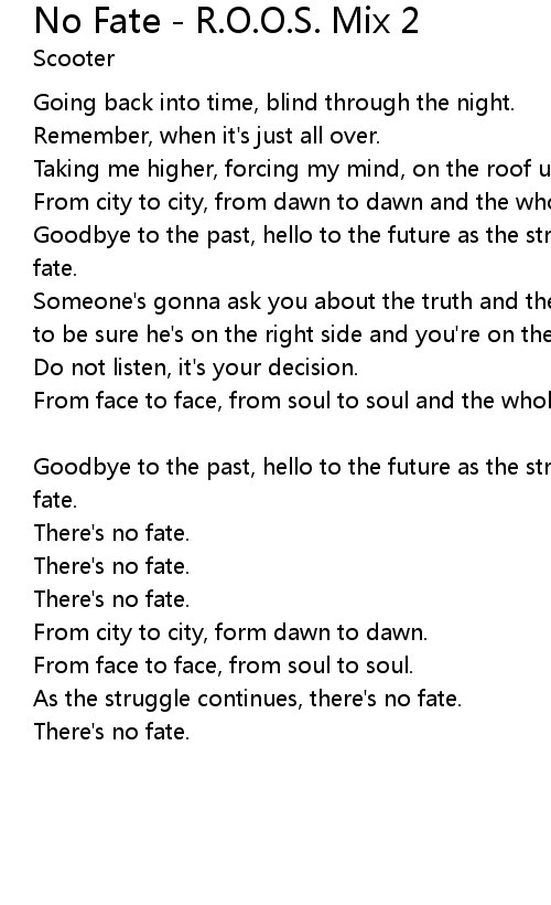 No Fate - R.O.O.S. Mix 2 歌词