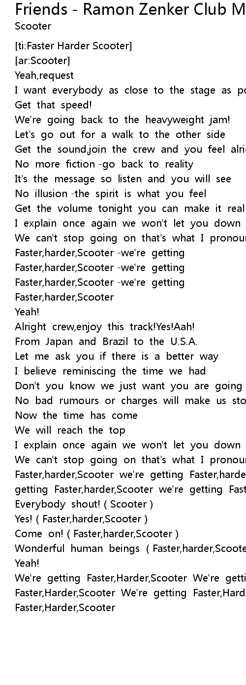 [03:05.04] We' re getting Faster, Harder, Scooter We' re getting Faster, Harder, Scooter We' re getting Faster, Harder, Scooter Faster, Harder, Scooter