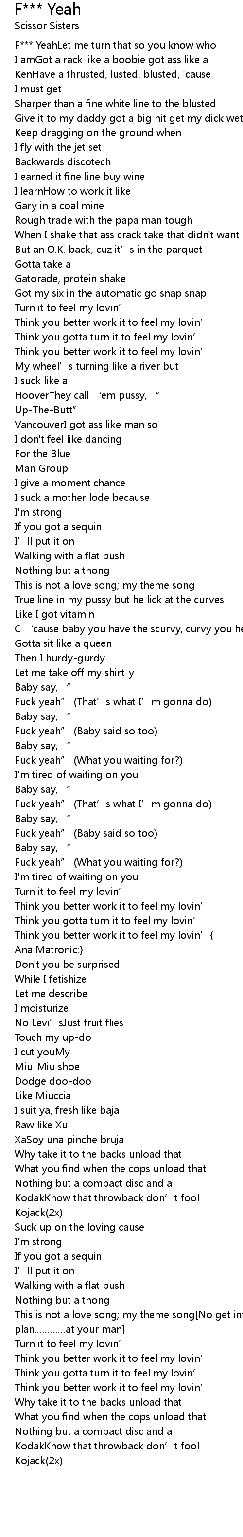 | Fuck yeah” (Baby said so too) | |