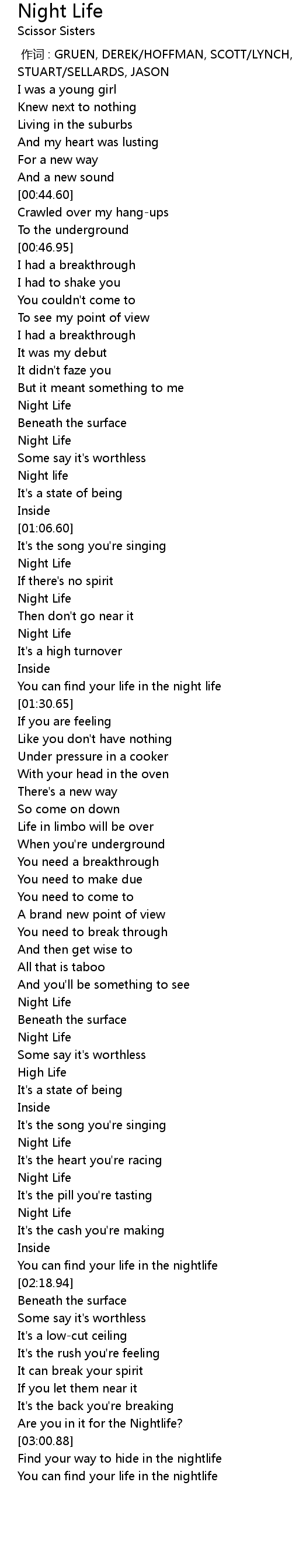 | [01:18.36] | You can find your life in the night life |