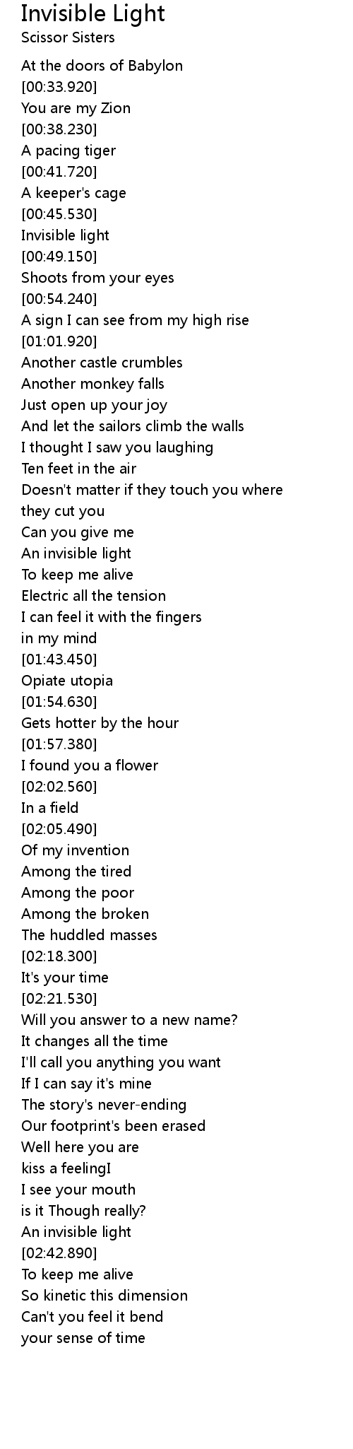 | [02:40.900] | An invisible light |