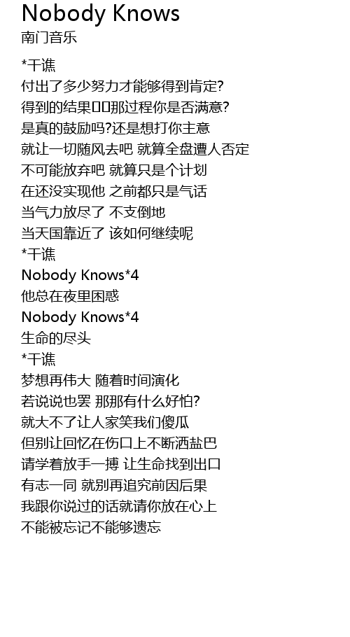 | 歌曲 | Nobody Knows |