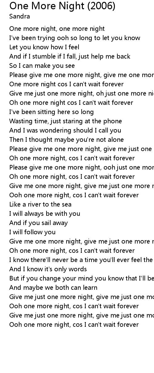 One more night, one more night |