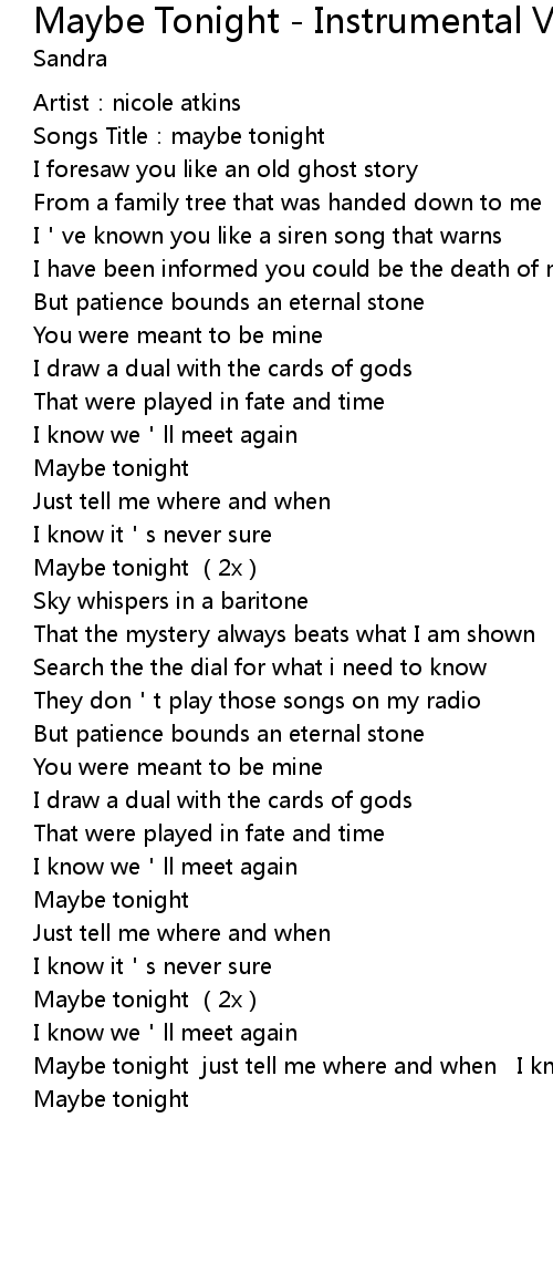 | [02:25.81] | Maybe tonight (2x) |