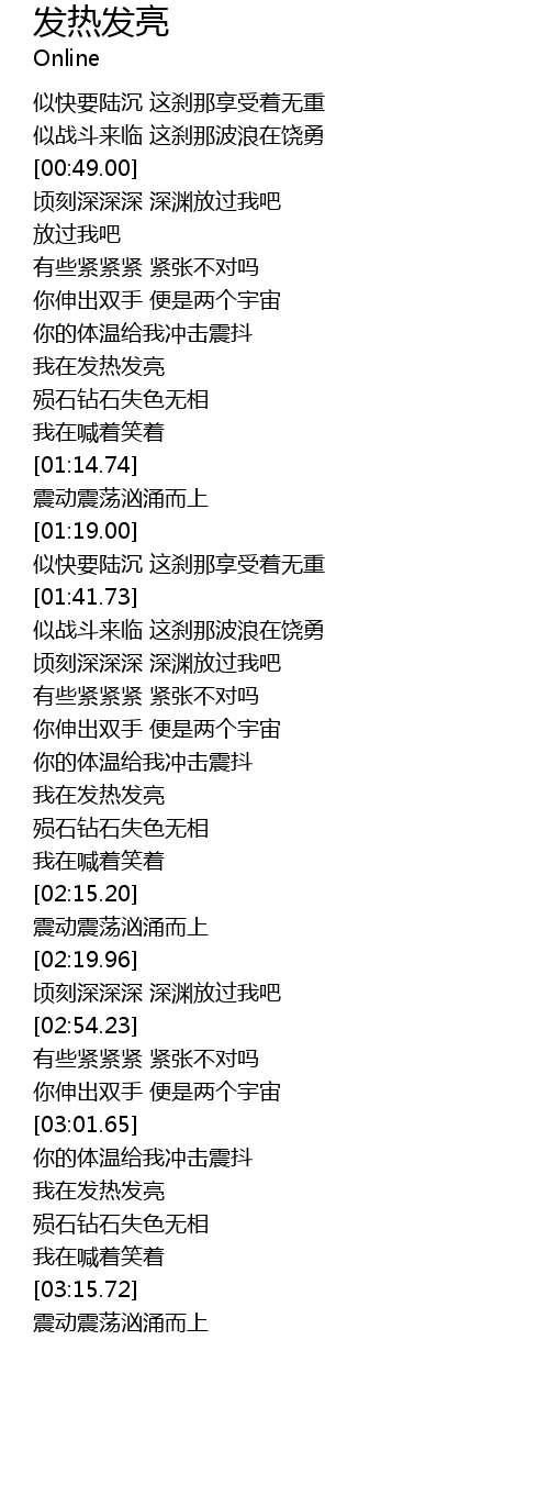 | [02:04.46] | 我在发热发亮 |