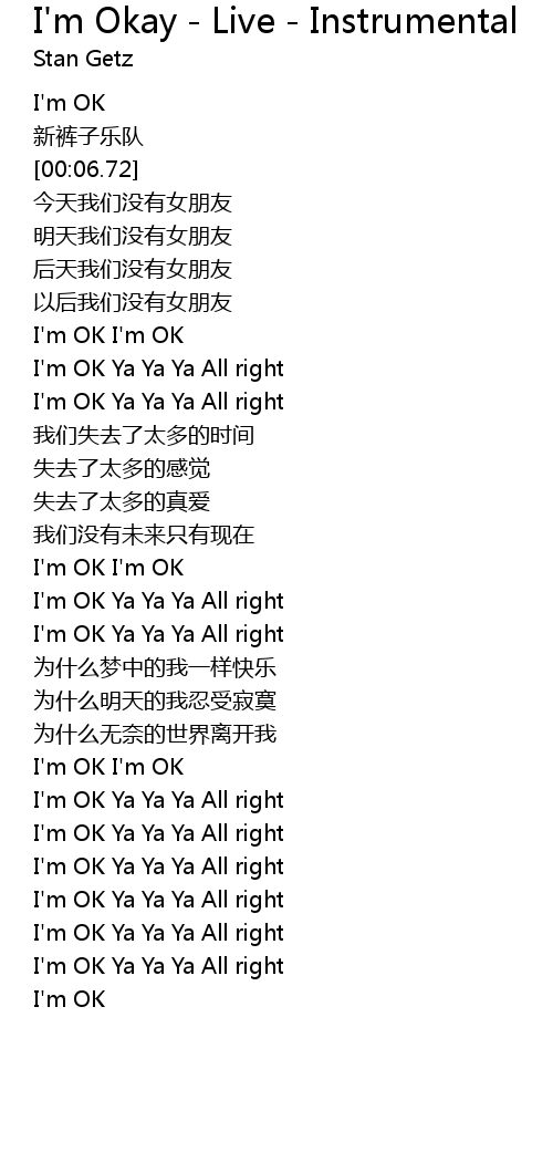 | [00:41.42] | I'm OK Ya Ya Ya All right |