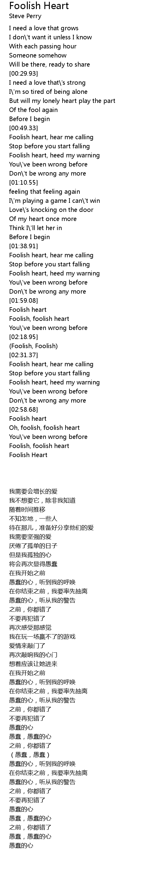 Oh, foolish, foolish heart |