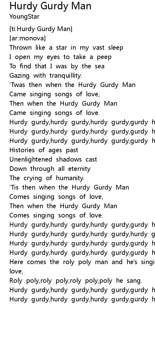 'Twas then when the Hurdy Gurdy Man |