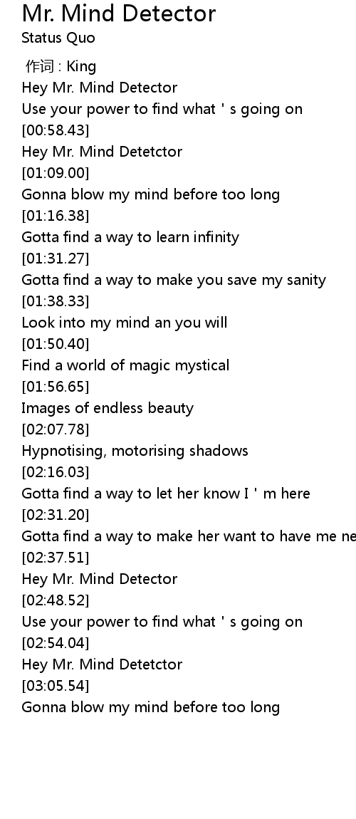 | [03:00.73] | Hey Mr. Mind Detetctor |