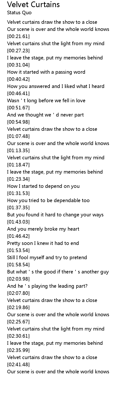 | [02:38.48] | Velvet curtains draw the show to a close |