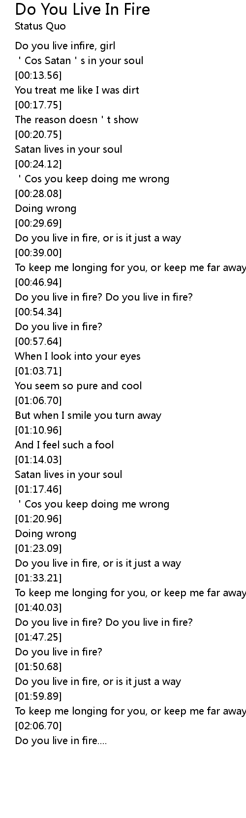 | [01:54.62] | Do you live in fire, or is it just a way |