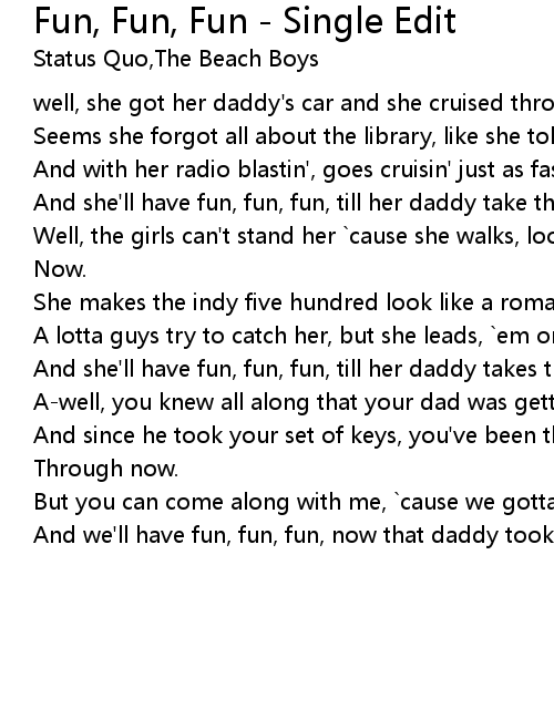 And she'll have fun, fun, fun, till her daddy take the t-bird away. |