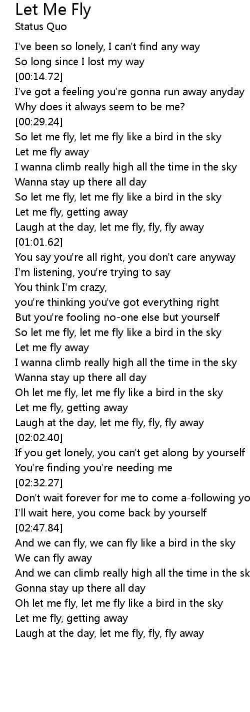 So let me fly, let me fly like a bird in the sky |