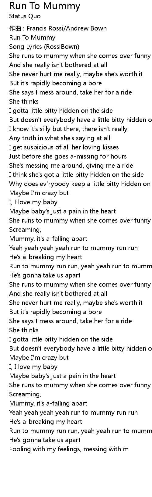 | Run to mummy run run, yeah yeah run to mummy | |