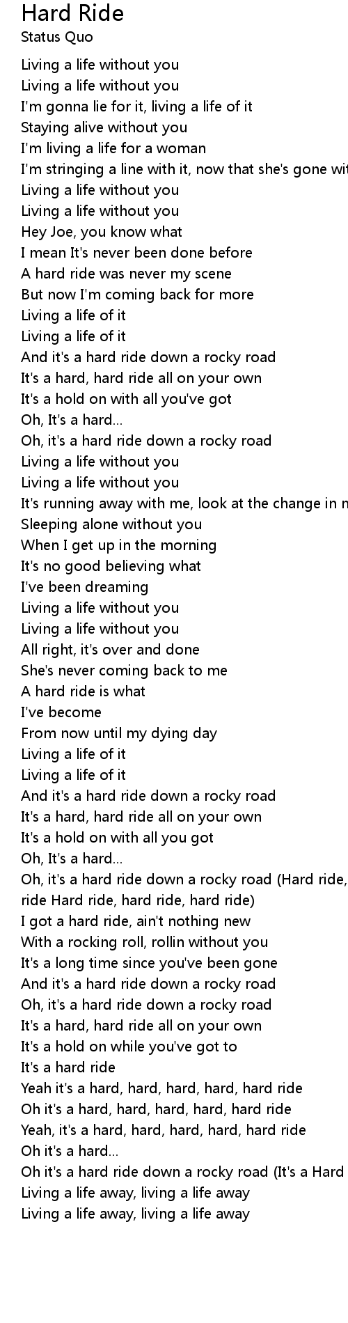 Oh, it's a hard ride down a rocky road (Hard ride, hard ride, hard ride, hard ride Hard ride, hard ride, hard ride)
