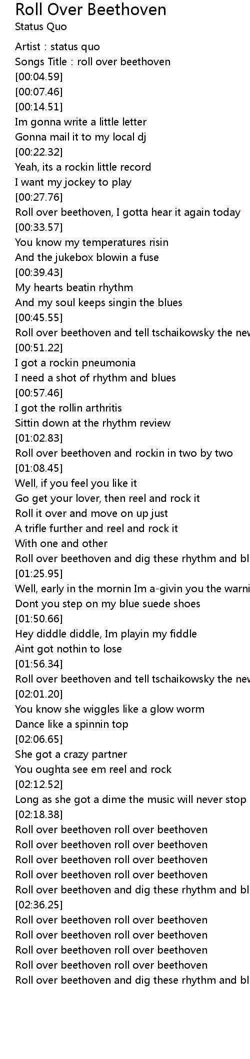 | [02:23.89] | Roll over beethoven roll over beethoven |