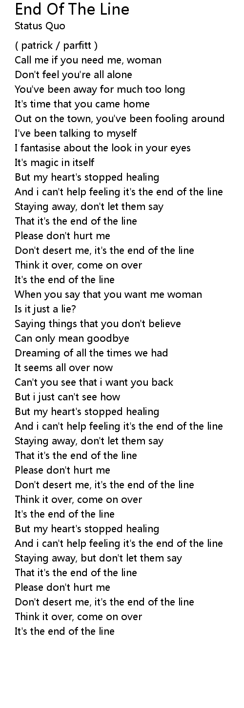 And i can't help feeling it's the end of the line |
