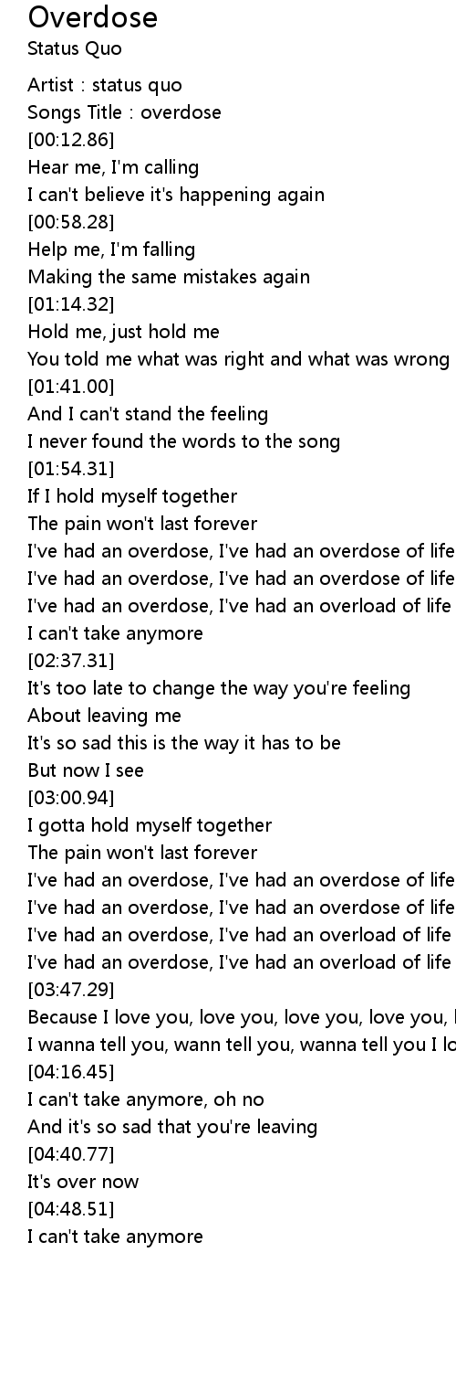 | [03:24.97] | I' ve had an overdose, I' ve had an overdose of life |