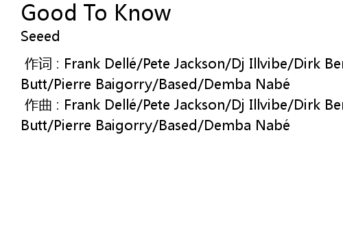 | 歌曲 | Good To Know |